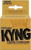 The new KYNG condom's highly-advanced design brings big-time comfort to the bigger guy. For the man who needs a larger, comfort fit. Larger than standard condoms - extra long and extra wide in Lifestyle's most popular flared shape. Specially-lubricated for maximum pleasure. Reservoir tip offers extra safety and comfort. (Package Of 5)